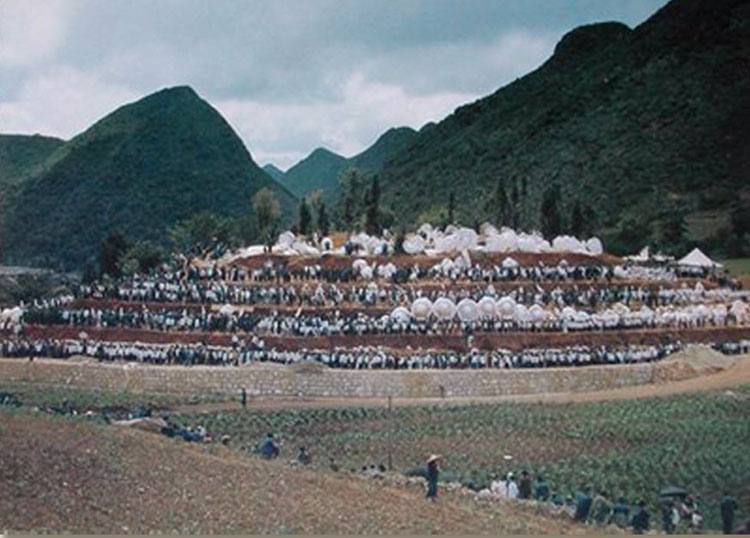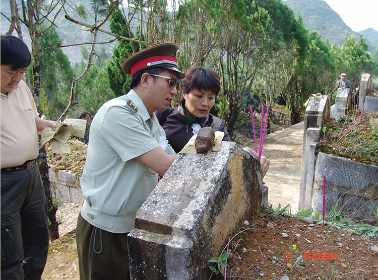 2006年4月8日,战斗英雄安忠文,在西畴县南疆烈士陵园祭奠烈士